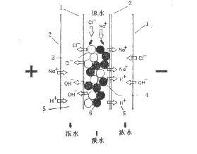 4—陽(yáng)離子交換樹脂;5—濃水室;6—淡水室