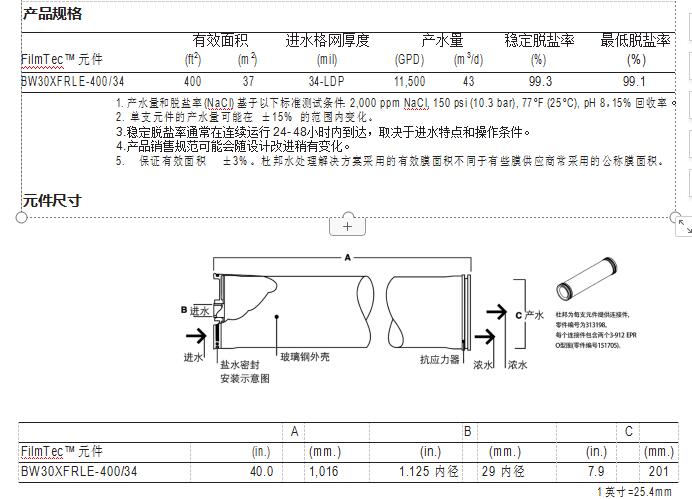 FilmTec™ BW30XFRLE-400/34 膜元件
