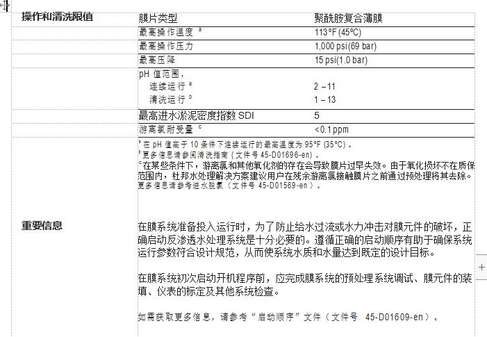 • SW30HRLE-4040 元件在制造過程中沒有像其他元件制造商那樣采用氧化性的 后處理工藝提高短時的初始性能,因而能在長期運行中一直保持高性能。這 是為什么 FilmTec™ 膜元件比其他品牌經久耐用,可在更寬的 pH 范圍(1~13) 內進行更有效的化學清洗的關鍵原因之一。