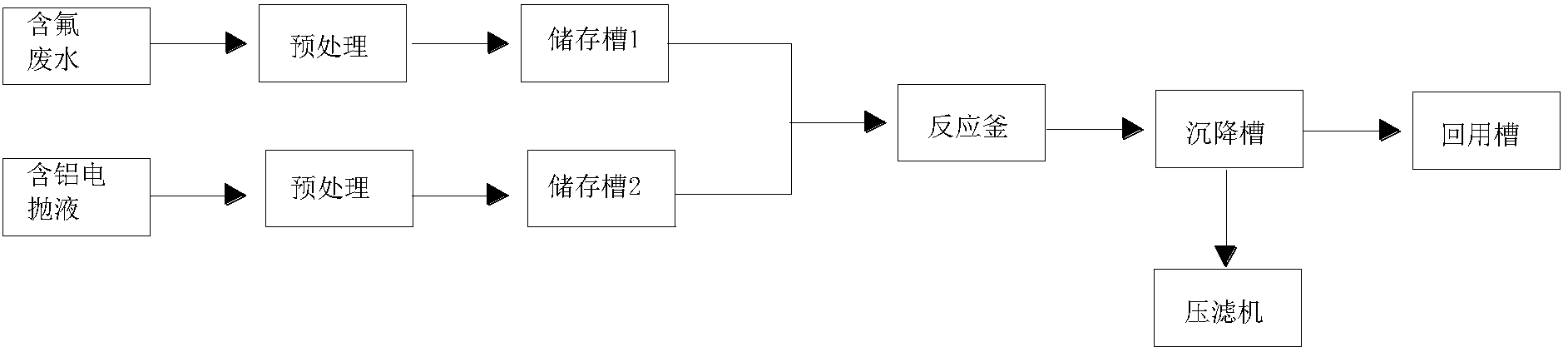 (1)本發明創造性的提出利用含氟廢水和含鋁電拋液混合反應,以廢治廢并實現資源化回收,實現了氟、酸液資源的回收利用,能耗低,不造成二次污染,具有較大的經濟利益和環保利益。