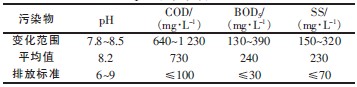 COD采用重鉻酸鉀法測定;BOD5采用稀釋與接種法測定;SS 采用重量法測定;pH 采用pH 酸度計測定;DO 采用便攜式溶解氧測定儀測定。