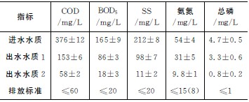 表2 進(jìn)出水水質(zhì)及排放標(biāo)準(zhǔn)