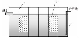 農(nóng)村地區(qū)未經(jīng)處理的生活污水嚴(yán)重污染了土壤、地表水和地下水,是造成農(nóng)村環(huán)境污染的重要原因之一。人工濕地污水處理技術(shù)是20世紀(jì)70年代興起的一種新型生態(tài)污水處理技術(shù),由于具有對(duì)污染物去除效果好、基建和運(yùn)行費(fèi)用低、工藝設(shè)備簡單、維護(hù)管理方便等特點(diǎn),正逐漸被應(yīng)用于廣大中小城鎮(zhèn)和鄉(xiāng)村地區(qū)的生活污水處理中。潛流人工濕地作為人工濕地的一種類型,因其充分利用了濕地的空間,發(fā)揮了系統(tǒng)間的協(xié)同作用,使污水處理能力得到大幅度提高,且占地面積相對(duì)較小,因而在污水處理中已經(jīng)得到了廣泛的應(yīng)用。目前,江南大部分農(nóng)村地區(qū)都建有化糞池,由于化糞池出水中有機(jī)物、SS等污染物濃度均較高,如果出水直接進(jìn)入潛流人工濕地,將會(huì)對(duì)人工濕地的運(yùn)行造成較為嚴(yán)重的影響,在較短時(shí)間內(nèi)即會(huì)造成濕地堵塞,嚴(yán)重影響濕地使用壽命。因此,在濕地前增加一道預(yù)處理,有效降低污染物濃度,可以大大延長人工濕地的使用壽命,并且保證人工濕地的出水效果。