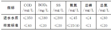表1 進(jìn)水水質(zhì)及排放標(biāo)準(zhǔn)