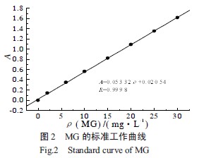 孔雀石綠化學名稱為四甲基二氨基三苯甲烷,屬三苯甲烷類染料,作為殺菌劑常被違規用于水產養殖業,用于延長魚類等的運輸存活期。孔雀石綠在生物體殘留蓄積具有致癌、致畸、致突變等危害,因此降解水環境中低濃度孔雀石綠殘留具有實用意義。孔雀石綠廢水的處理方法有很多種,諸如物理吸附法,化學氧化法等,這些方法存在操作條件苛刻和處理效果不理想等問題,因此開發高效快速、經濟適宜的孔雀石綠廢水處理方法成為研究熱點。