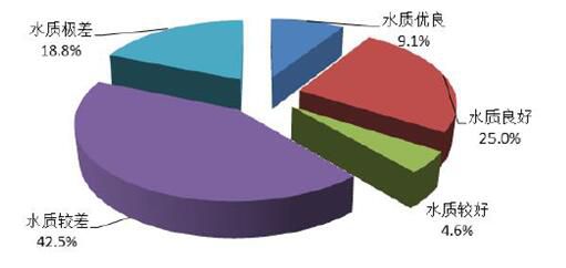 根據(jù)國(guó)家環(huán)保部發(fā)布的《2015中國(guó)環(huán)境狀況公報(bào)》,長(zhǎng)江、黃河、珠江、松花江、淮河、海河、遼河等七大流域和浙閩片河流、西北諸河和西南諸河的國(guó)控?cái)嗝嬷,Ⅰ~Ⅲ類、Ⅳ~Ⅴ類以及劣Ⅴ類水質(zhì)斷面比例分別為72.1%、19.0%和8.9%。