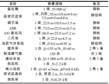 主要構(gòu)筑物、設(shè)備選型見表2。