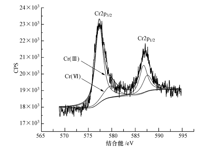 圖 5 李氏禾濕地基質(zhì)吸附Cr(Ⅵ)后Cr2p高分辨率XPS譜圖