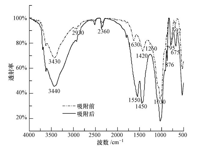 圖 6 李氏禾濕地基質(zhì)吸附Cr(Ⅵ)前后FTIR譜圖