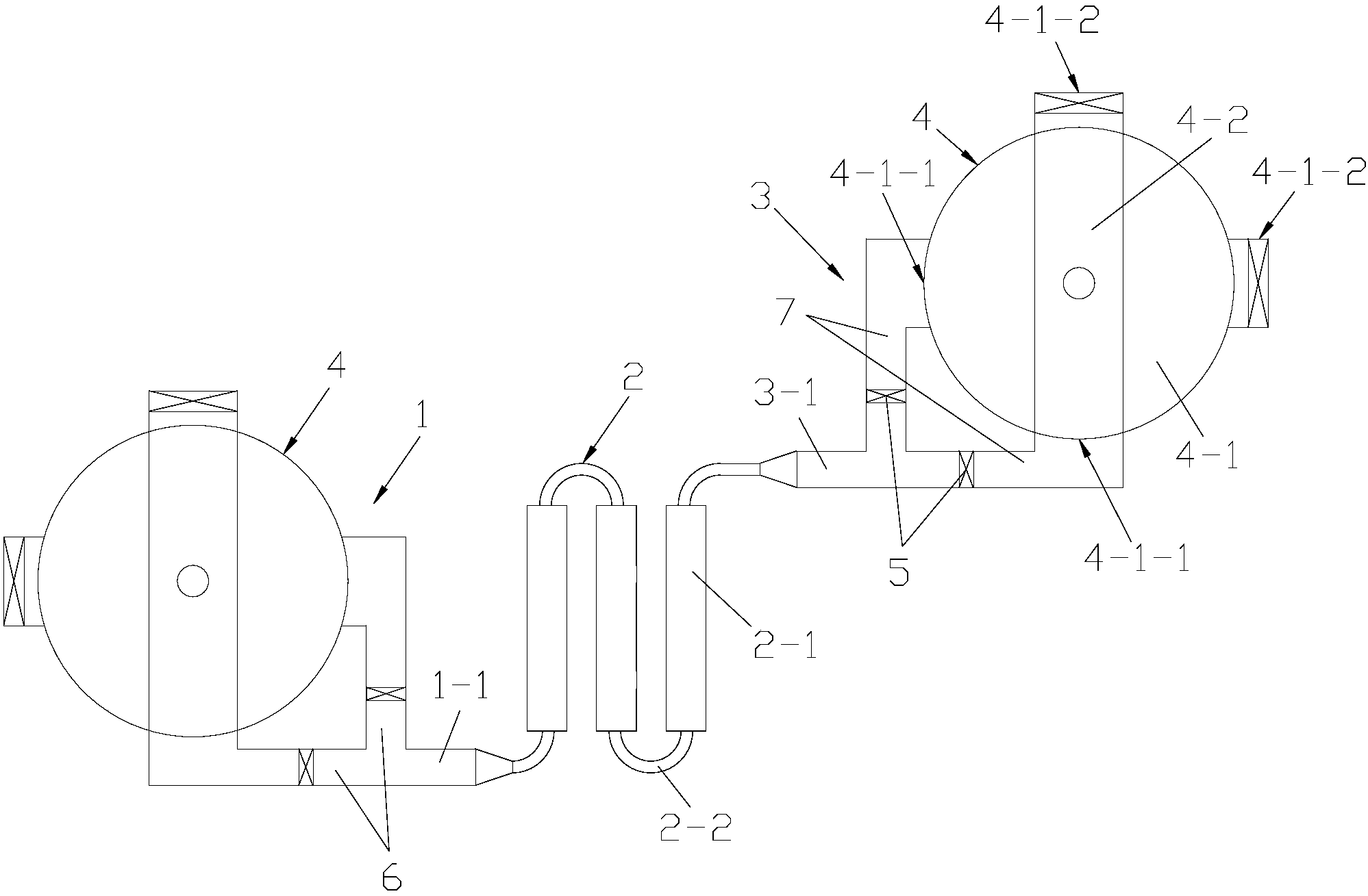 所述進水機構(1)的接頭組件(4)中,兩個接管口(4-1-1)分別通過兩根進水支管(6)與進水管(1-1)并接;所述出水機構(3)的接頭組件(4)中,兩個接管口(4-1-1)分別通過兩根出水支管(7)與出水管(3-1)并接。