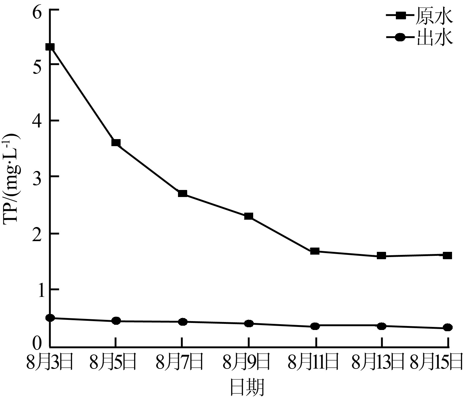 由表3可見,工藝中對TP去除起主要作用的工序是TMF過濾,其去除率約為58%。經過MBR和吸附處理后,廢水中TP質量濃度小于0.5mg/L,達到(GB21900—2008)表3標準的要求。