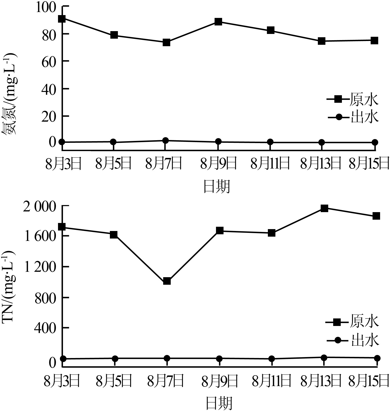 廢水中氨氮和TN的去除效果如圖2>所示。