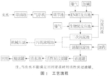 (3)ENRT 工藝出水經生物炭池、砂濾罐、活性炭罐、精濾罐進一步處理后,可滿足廠區回用水要求。