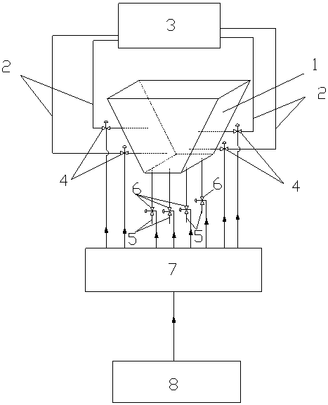 化學(xué)除油器的底部連通有多根排泥管道,每根排泥管道上均設(shè)有第二電磁閥;所述的電磁閥通過(guò)輸出模塊與控制器相連;所述的第二電磁閥也通過(guò)輸出模塊與控制器相連。