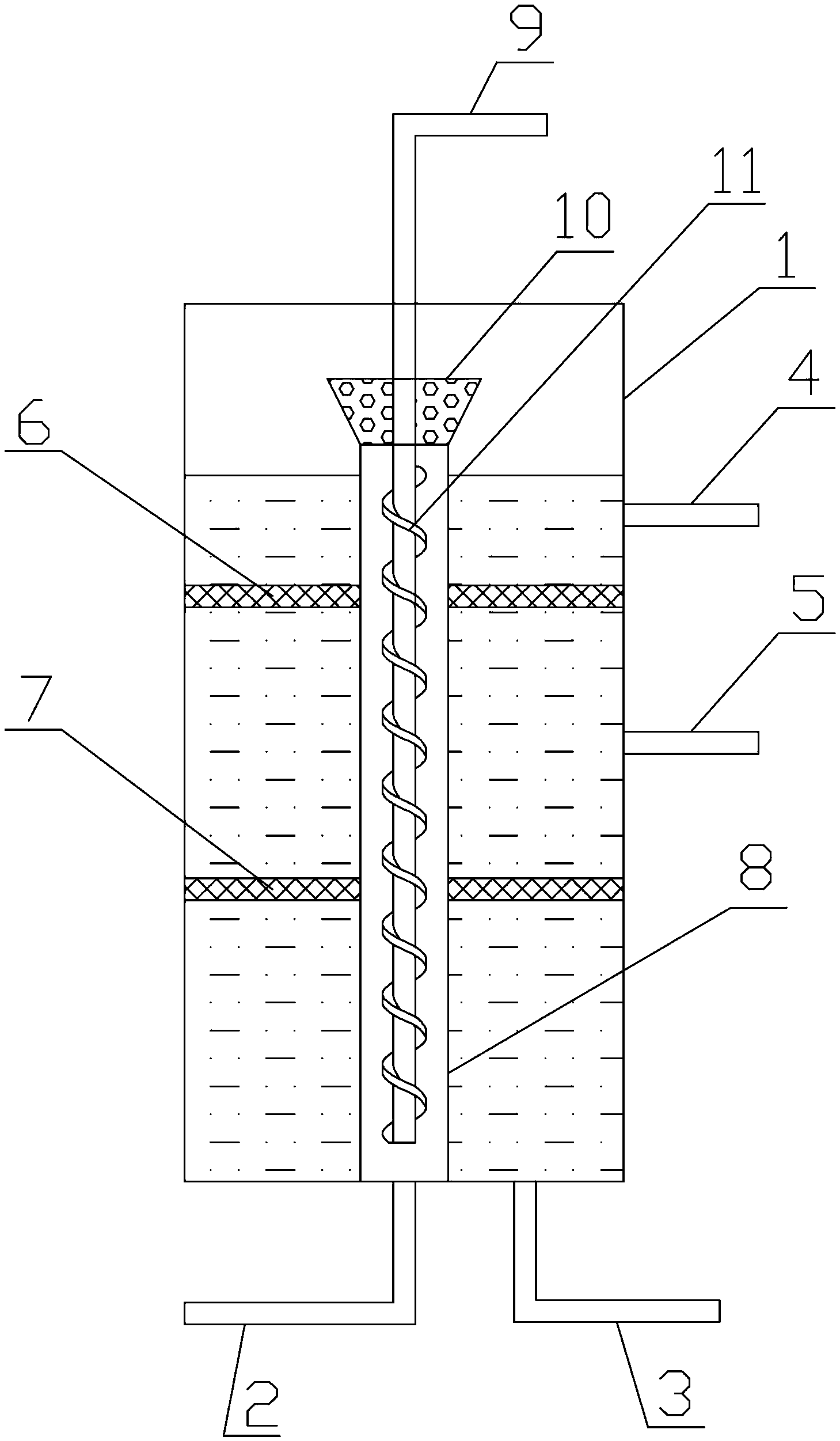 2.根據(jù)權利要求1所述的雙甘膦廢水的處理裝置,其特征在于:所述中心管(9)外側設有螺旋板(11)。