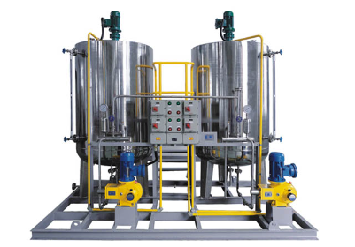 本裝置主要包括藥液計量泵系統(tǒng)、溶配系統(tǒng)、計量投加系統(tǒng)、安全系統(tǒng)和控制系統(tǒng)等五部分。