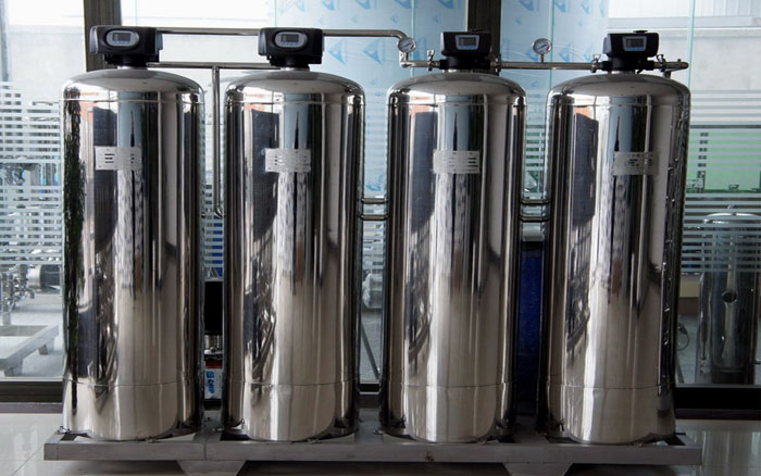 原水(設(shè)有壓力保護(hù))→增壓泵(一用一備)→砂過濾器→炭過濾器→硬化器(根據(jù)地區(qū)不合選用)→緊密過濾器(或稱保安過濾器)→兩頭水箱→RO前水泵→緊密過濾器(或稱保安過濾器)→RO高壓泵→RO反滲透零碎→RO水箱→RO水增壓泵→混床→終端緊密過濾→設(shè)備用水(水質(zhì)可以達(dá)到16MΩ.cm以上即0.06 μs/ ㎝以下,25 ℃)