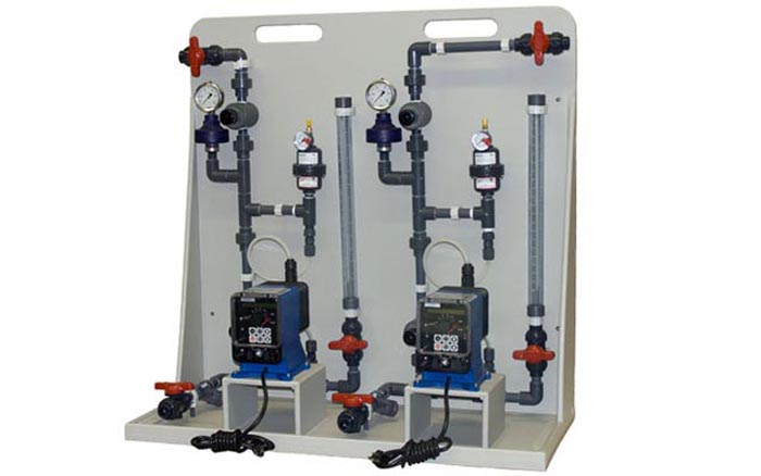 循環水加藥裝置是一種全新概念的化學水處理加藥設備,廣泛于火力發電、石油、化工等行業爐水處理系統、原水處理系統以及廢水處理系統。它是由計量泵、溶液箱、控制系統、管路及閥門等組件安裝在同一底座上,實現藥液溶配、計量投加功能。按其用途有聯氨除氧加藥裝置、緩腐蝕劑加藥裝置、調節PH值加酸(堿)裝置以及硫酸亞鐵鍍膜加藥裝置等。按其形式分一泵一箱、兩泵兩箱、三泵兩箱、多泵多箱等。