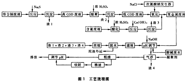 、 絡(luò)合銅廢液主要是化學(xué)鍍銅廢液,加入Na2S破壞銅絡(luò)合物,使Cu2+形成CuS沉淀去除。除Cu后含COD的出水再做后續(xù)處理。