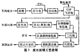 ① 針對車間排放廢水濃度高的特點,首先進行物化預處理,同時考慮到生活污水可生化性較好,在后續處理中將生產、生活污水混合處理以達到比較好的處理效果。