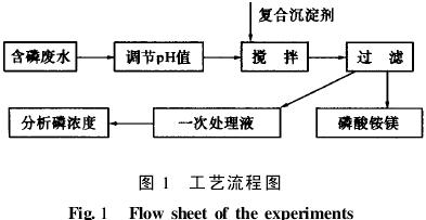 磷酸銨鎂是一種含有磷、銨和鎂的緩效復合肥,它在水中的溶解度很小,因而可以沉淀析出。本文以處理磷濃度較高的含磷廢水為背景,重點研究該工藝開發及其理論基礎,為工業和生活廢水中用此法除磷提供基礎數據。