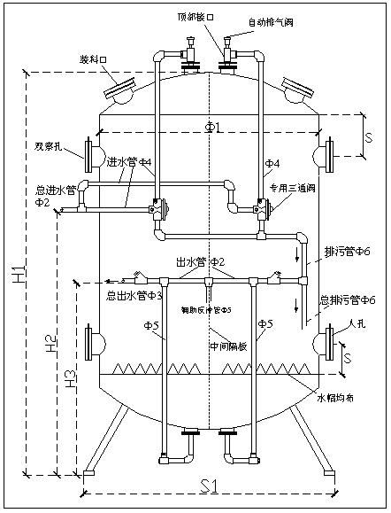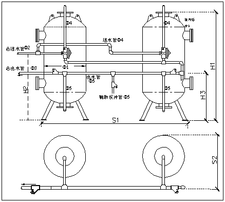 標準系統的優異的反沖洗強度、產水量等水流特性使過濾器工作于穩定狀態下;較大的進出水及排水口可提供大的沖洗強度,以較少的水耗得到較好的沖洗效果;系統設計時配用了專用的排氣閥,可將運行時帶入罐內的氣體及時排出,減少氣體對設備運行及反沖洗的影響,提高設備運行的穩定性;系統采用手動控制或壓差表自動控制,可以實現無人值守;標準系統均為雙罐并聯設計,可以隨時向后級系統連續供應合格水;設備自動采用無氧水進行反沖洗,進一步提高反沖洗效果,降低水耗及除氧劑消耗;系統采用模塊化設計,可以根據需要增加罐體以達到更高的產水量。